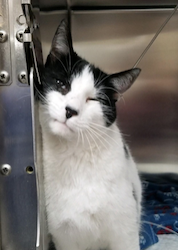 Toby was diagnosed with a urethral obstruction and a urinary tract infection. Blockage of a cat’s urethra is commonly referred to as a “blocked cat” or a “blocked tom,” although the condition is not restricted only to intact males. This blockage can be caused by stones or crystals in the bladder or urethra, a mucus plug, inflammation, or a mass. There are also other factors that can contribute to the condition, including stress, lack of water, diet, and infectious agents. Symptoms of the condition include frequent urination, straining to urinate, inappropriate urination (urination outside of the litter box), restlessness, crying while urinating, and may progress to lethargy and inappetence.